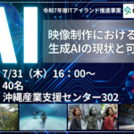 2025年7月1日 / 最終更新日時 : 2026年3月2日 okinawa-itnavi 県内IT事業者様へ 映像制作における動画生成AIの現状と可能性 沖縄県は、IT企業様向けに企業間マッチングを促進するセミナーを実施いたします。 動画生成AIの登場により、映像制作は今、根本から変わろうとしています。本セミナーでは、現役の映像クリエイターと共に、AI時代における制作の未 […]